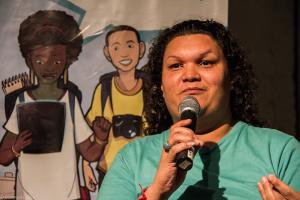 Moradora da Maré, Gilmara foi atravessada em 1999 por debates sobre a comunidade LGBT e passou a construir meios de pertencimento. Com apoio do Cedaps, reconheceu violências da e buscou aprendizado para transformar realidades. Encontrou acolhimento na Rede de Comunidades Saudáveis e compartilhou saberes sobre diversidade. Foi a primeira mulher trans a receber a medalha Tiradentes. Sua trajetória, segundo ela, é inesquecível e continua presente em cada passo que dá.